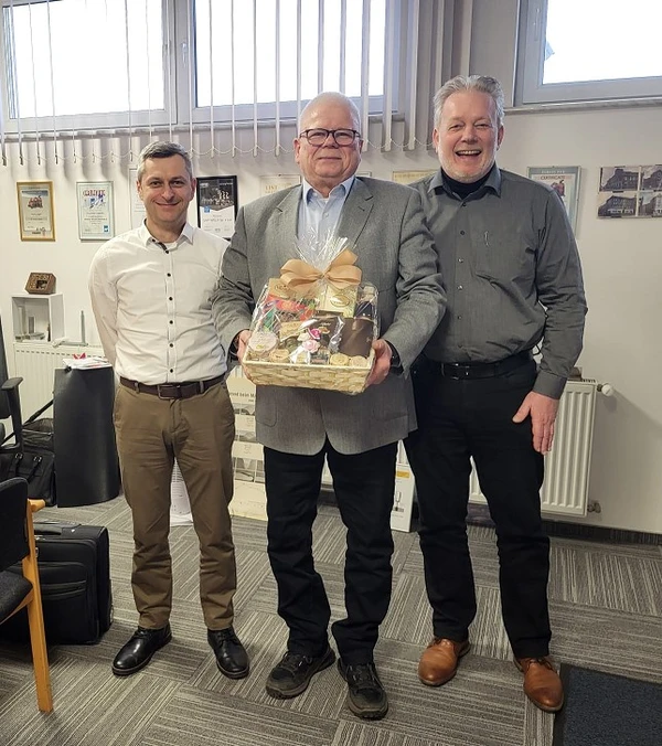 Holger Garms and Tomasz Blazejowski, two of our sales representatives at OTC, had the pleasure of personally visiting the birthday kid, Krzysztof Jaskulski of SAP Weld, on his special day.